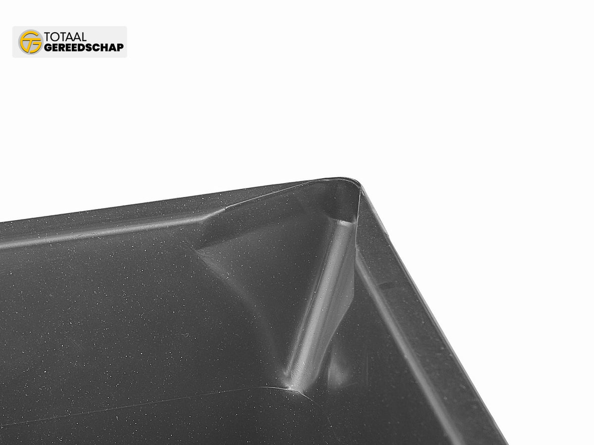 - One of the walls has embossed grooves to remove excess paint from the roller.