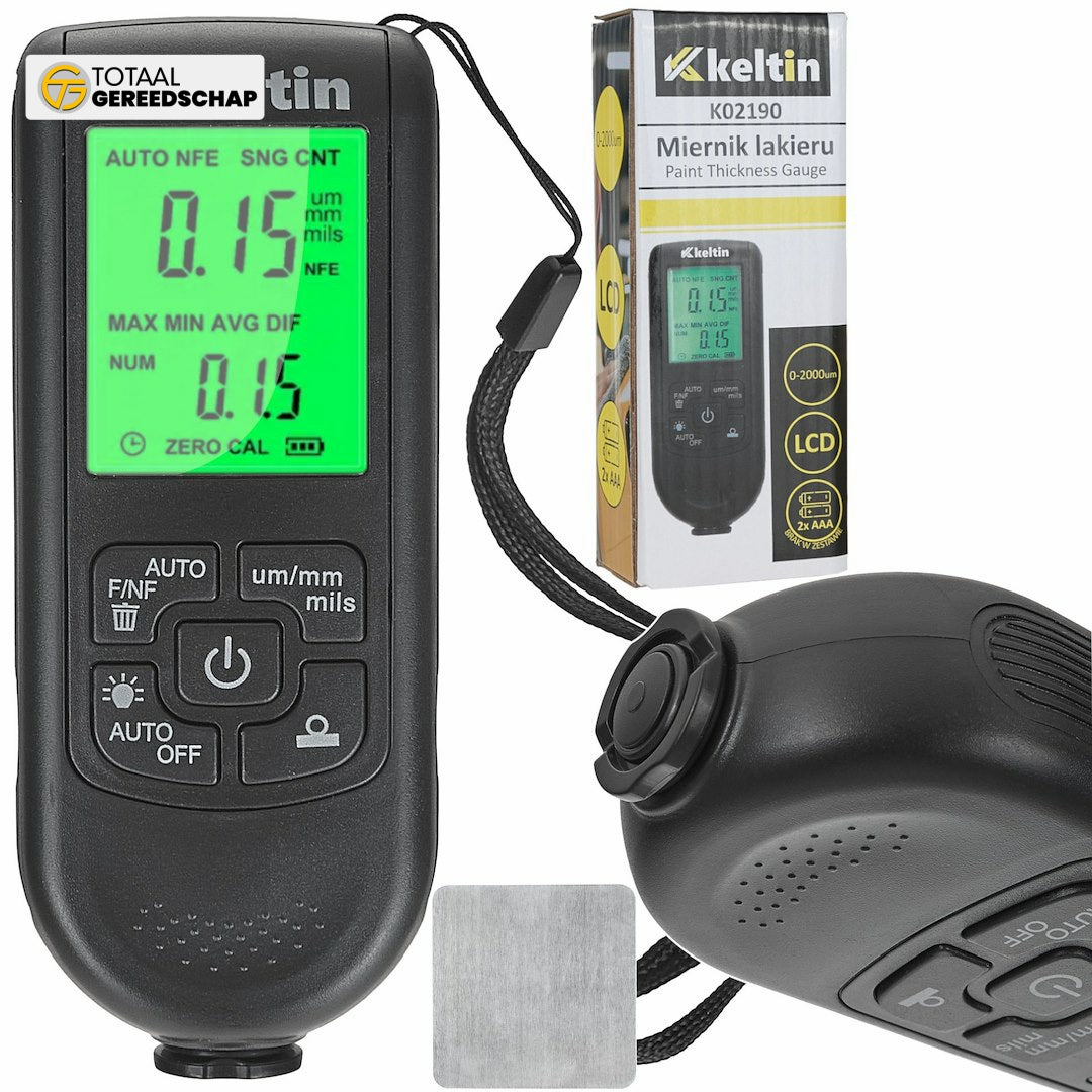 Measurement Range: The device allows for paint thickness measurement from 0 to 2000 micrometers (µm), making it suitable for checking both thin layers and thick coatings.