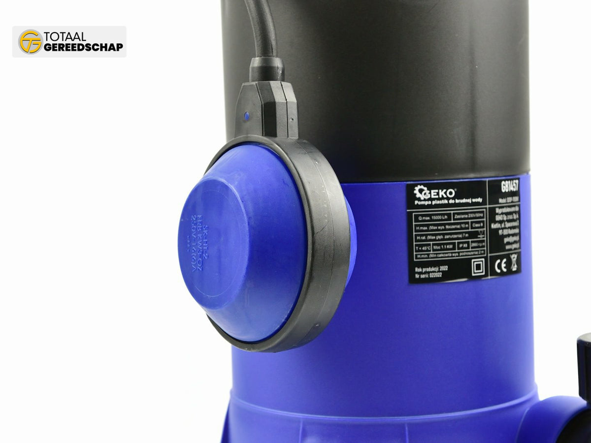 Submersible pump for clean / dirty water equipped with a single-phase motor with a real power of 1100W. The reinforced plastic vortex rotors crush contaminants with a diameter of up to 35mm (solids content <2%). The motor also has thermal overload protection.