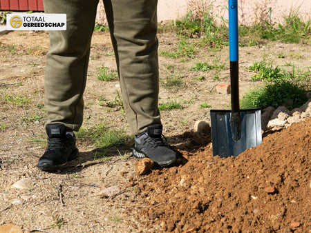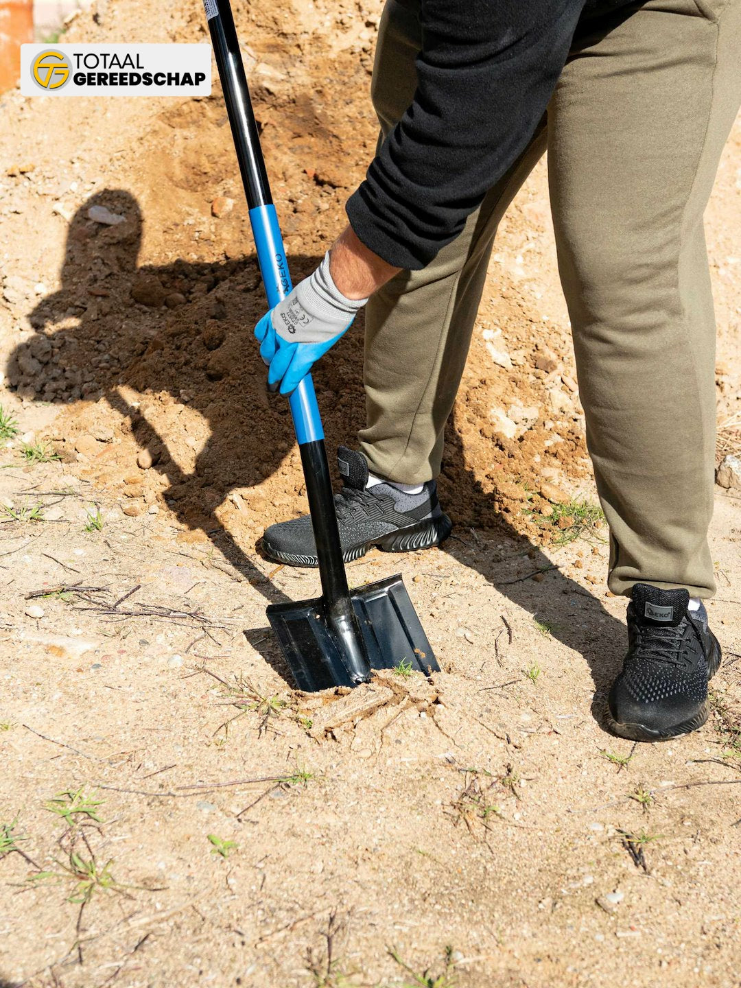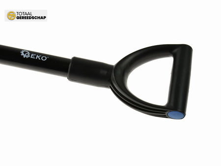 Steel curved handle coated with plastic, finished with a D-shaped grip made of durable plastic.