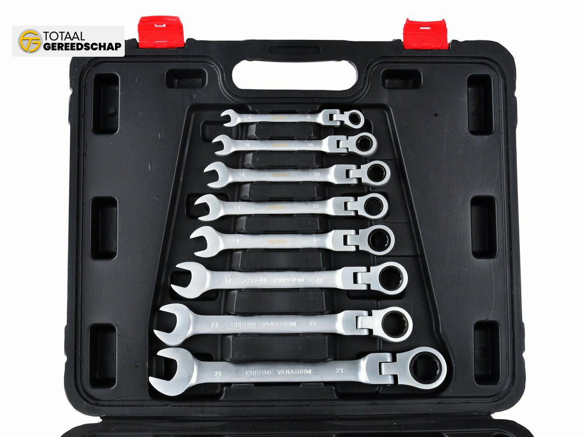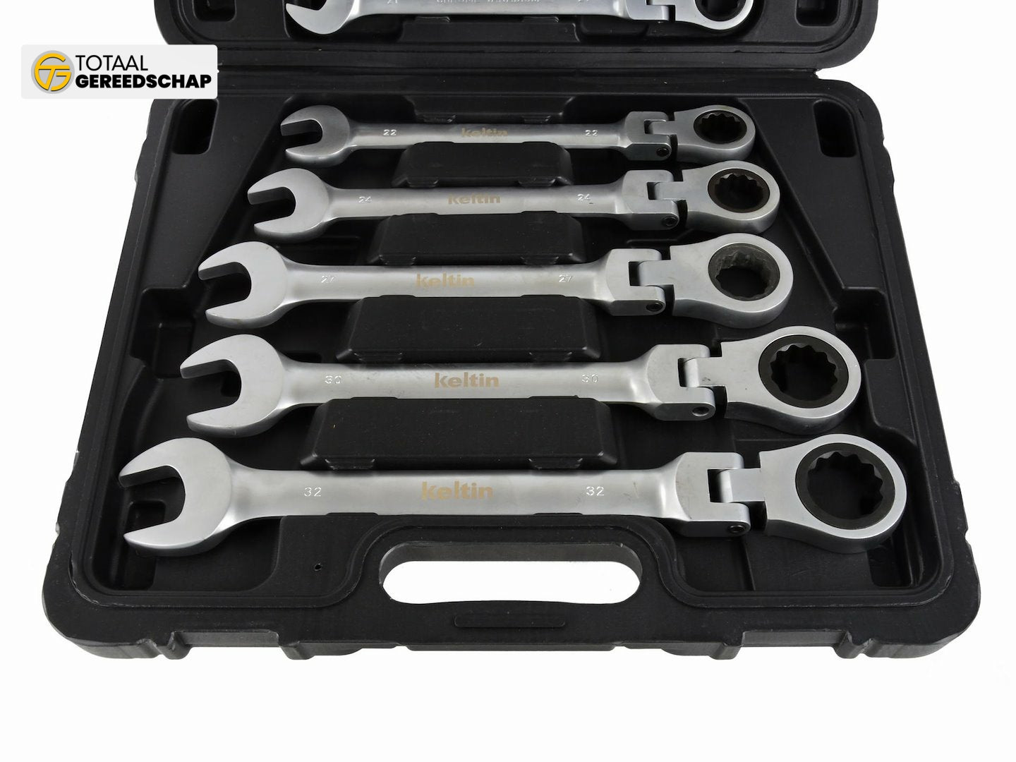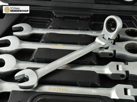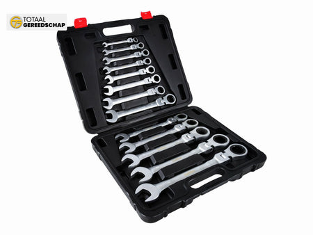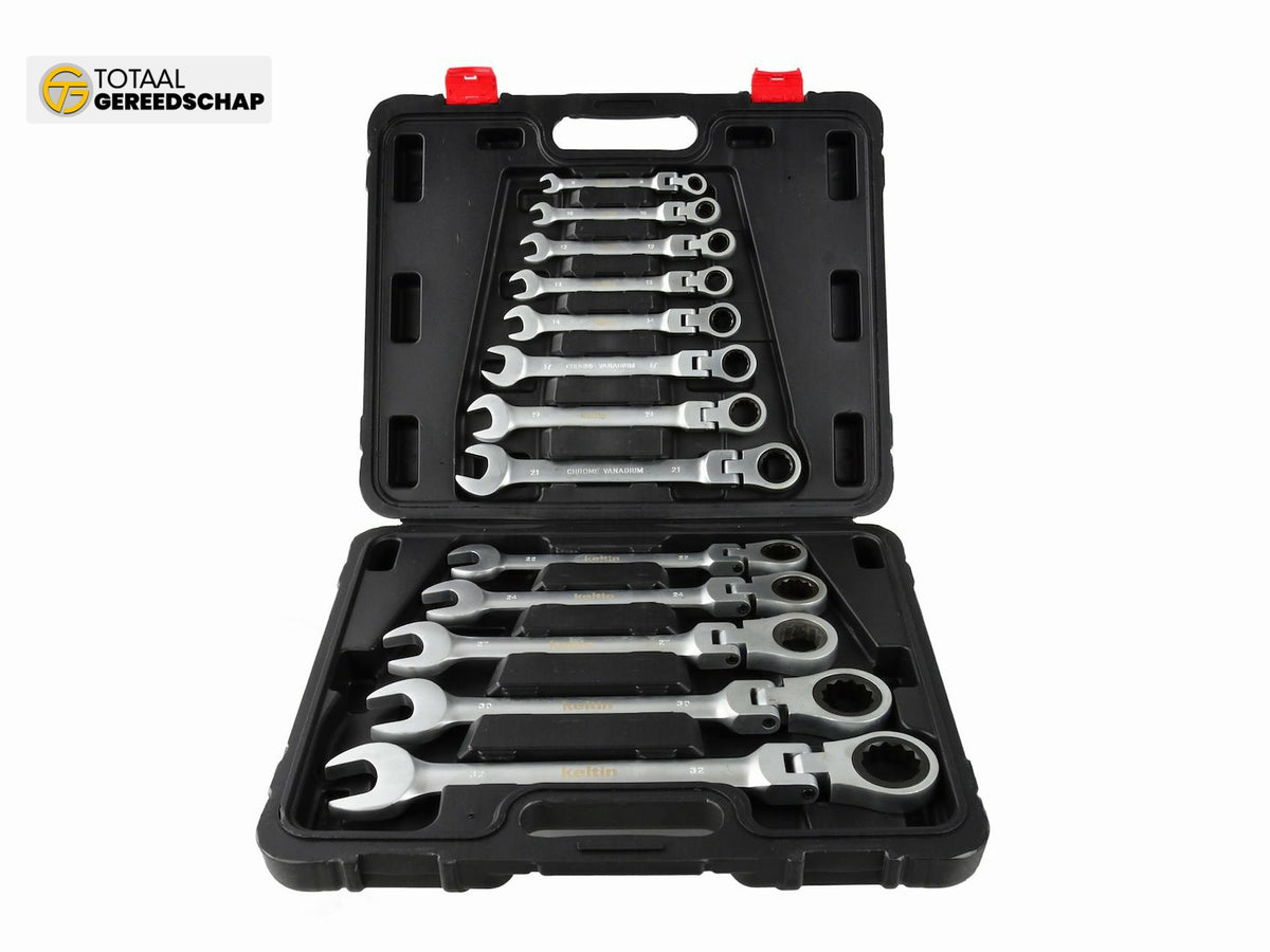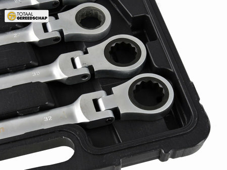 Reversible Ratcheting Wrench Set 8-32 mm. Ideal for use in hard-to-reach areas.