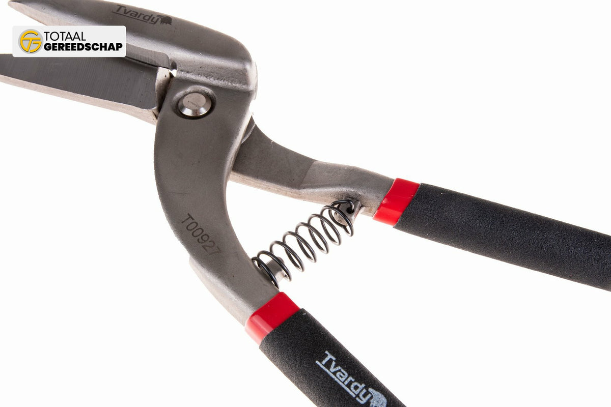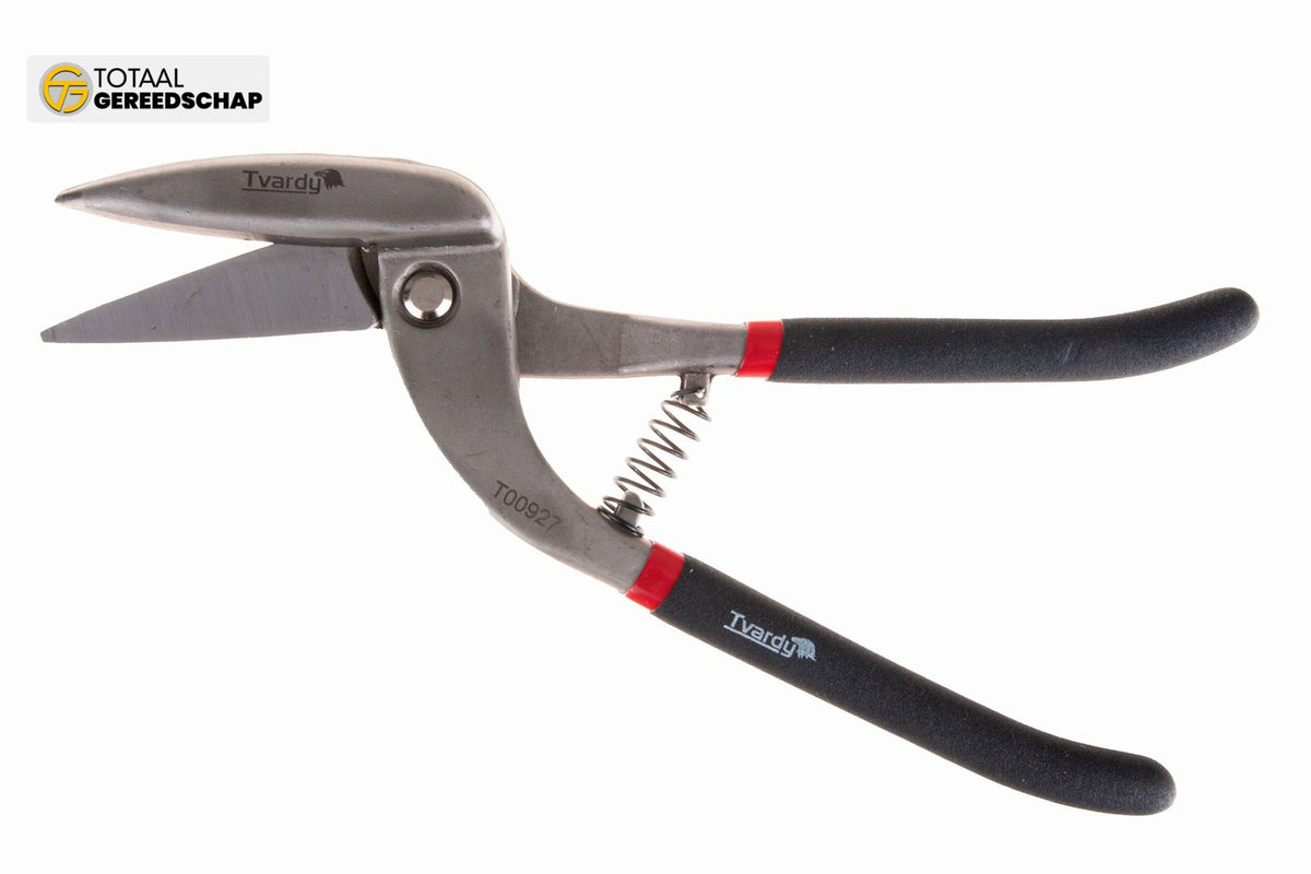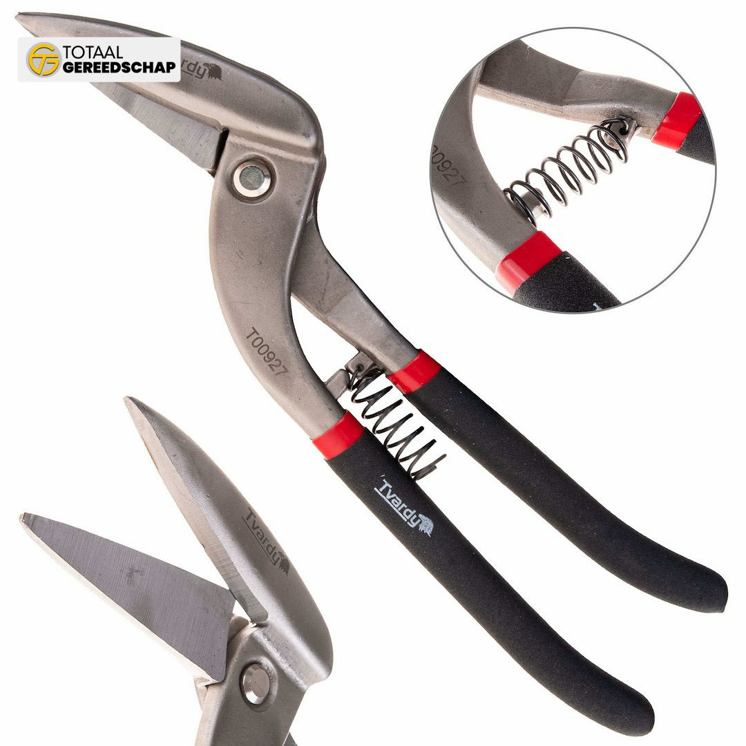 Tvardy 300 mm Right-Curved Pelican-Type Sheet Metal Snips are versatile tools perfect for precise cutting of sheet metal in various shapes. With a robust construction and ergonomic design, these snips provide comfort and efficiency with minimal effort.