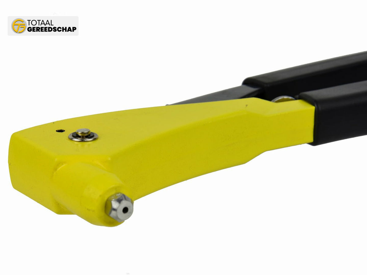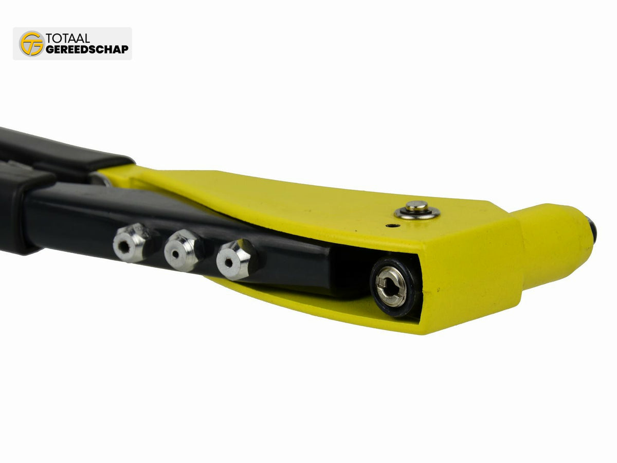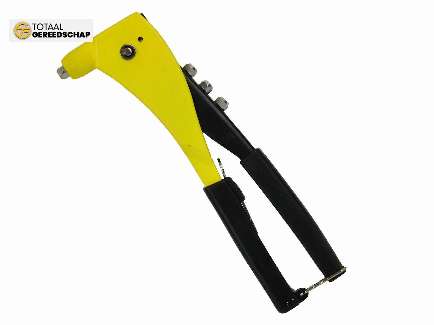 Hand Riveter Japan Style which can use 4 different size of rivets. Fastens sheet metal and heavy fabric in ductwork, construction, and auto body repair applications.