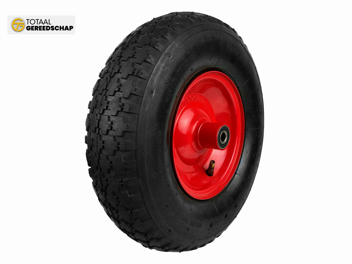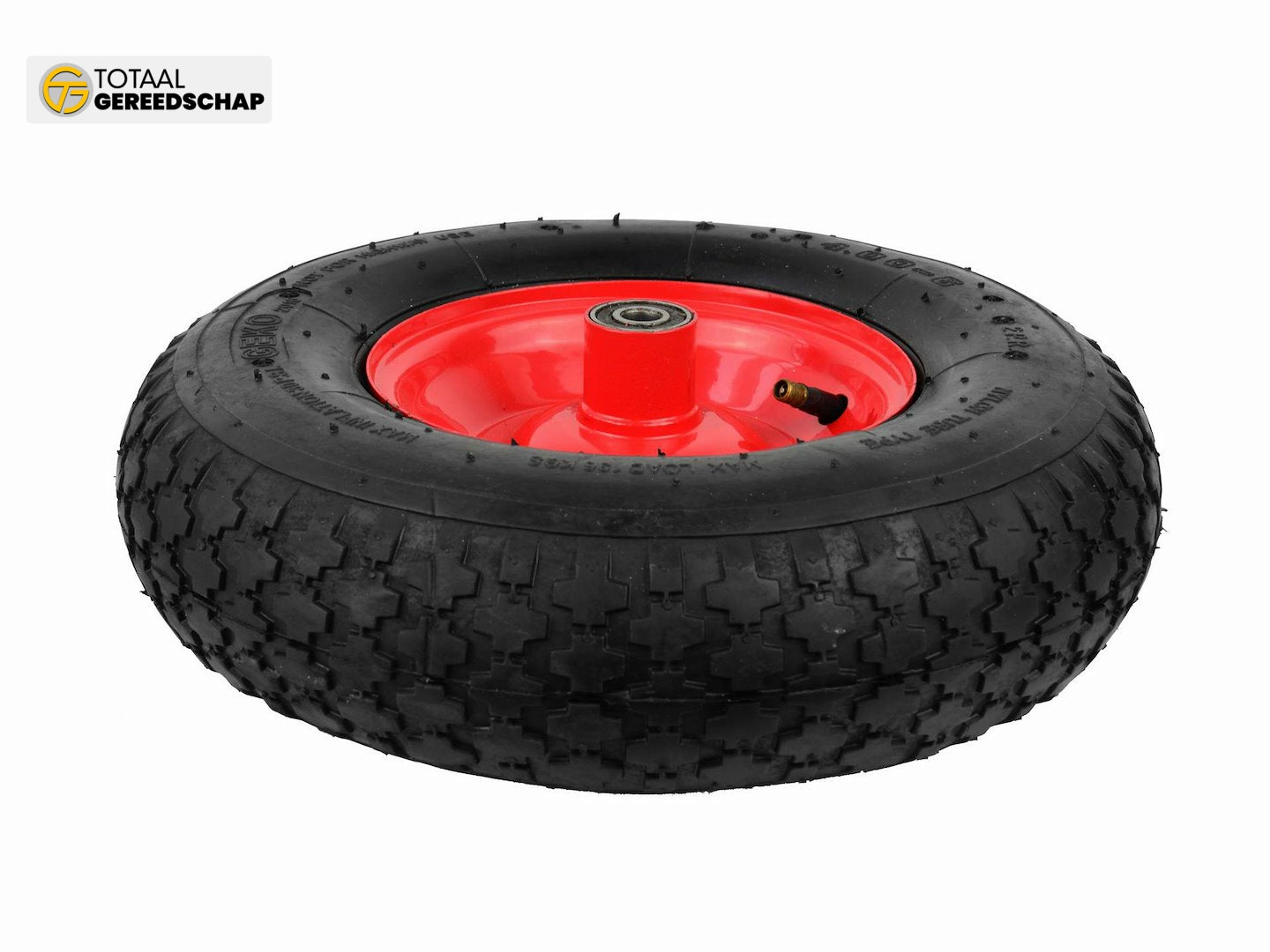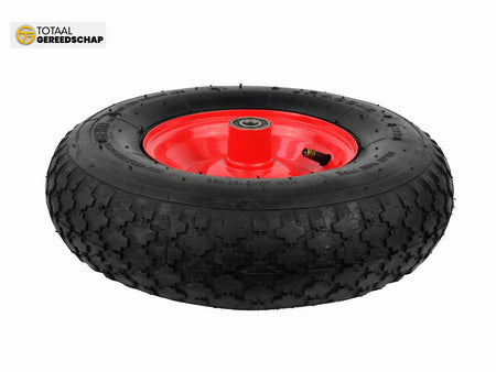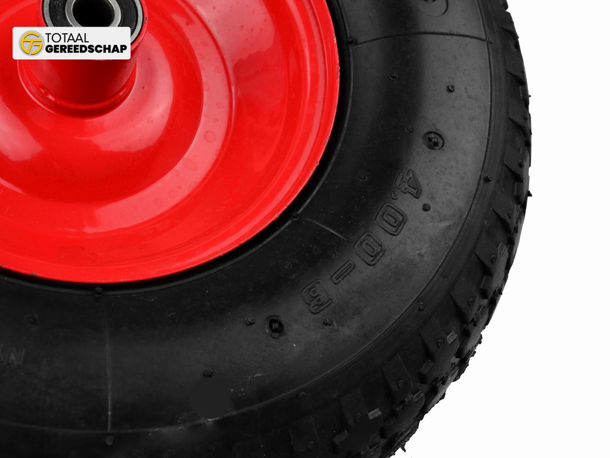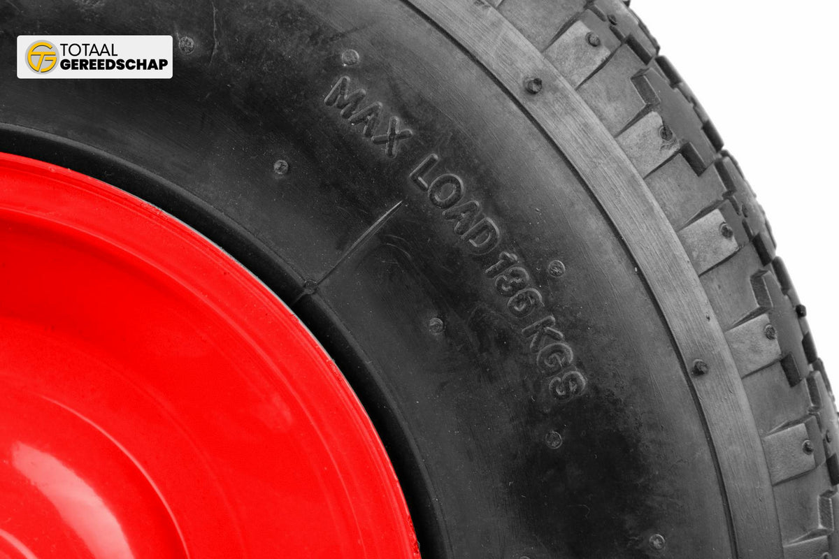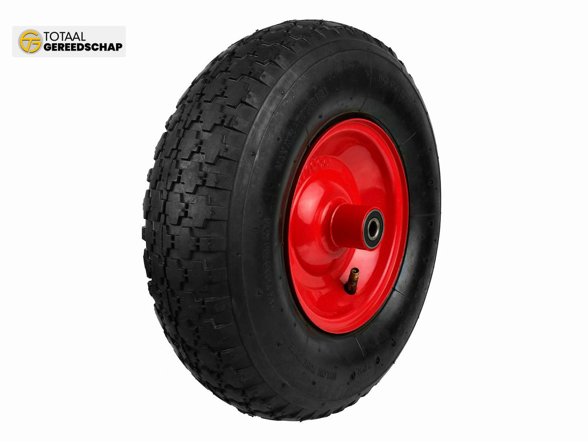 Inflatable 2PR wheel for wheelbarrow/cart with a maximum load capacity of up to 90 kg. The durable powder-coated metal rim ensures increased stability. Made from high-quality materials.