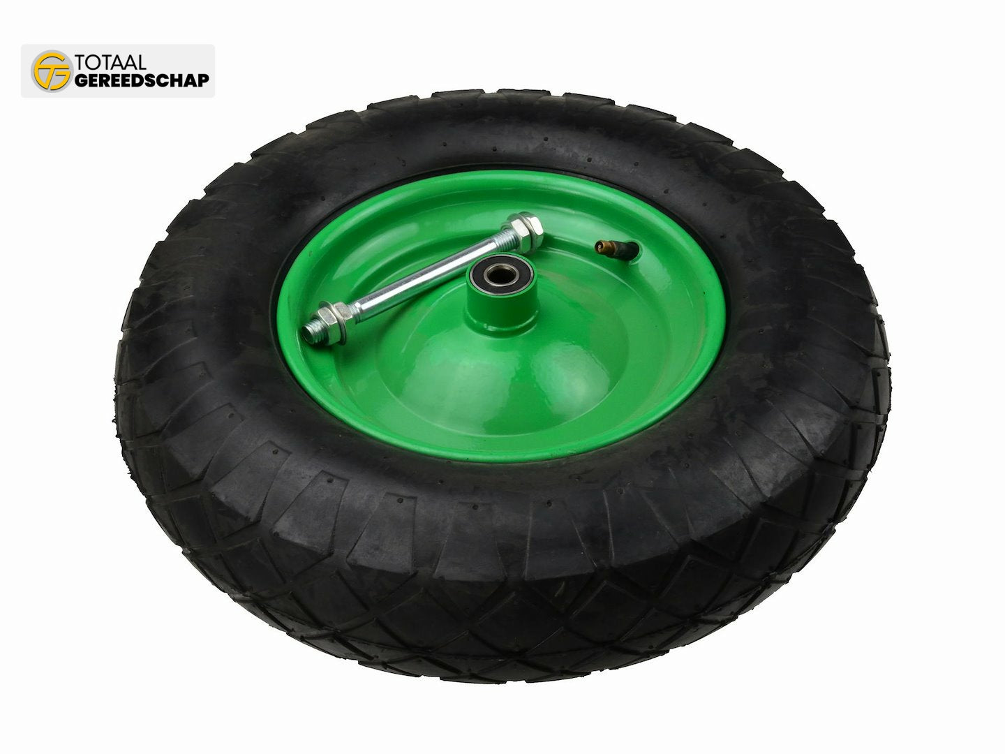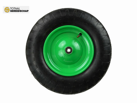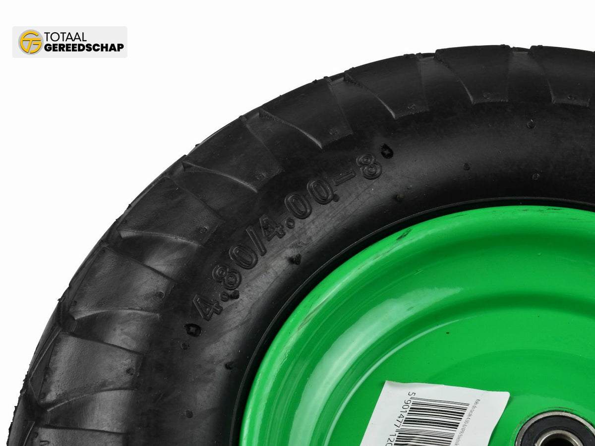 4-ply 4.00 - 8 wheel for wheelbarrow. The durable powder-coated metal rim ensures increased stability. Made from high-quality materials.
