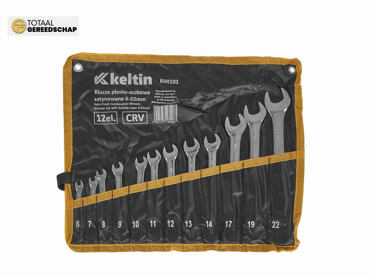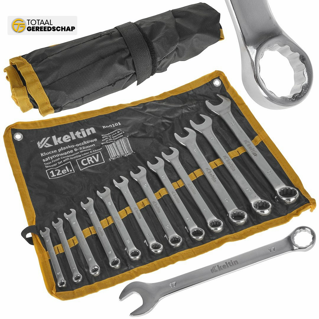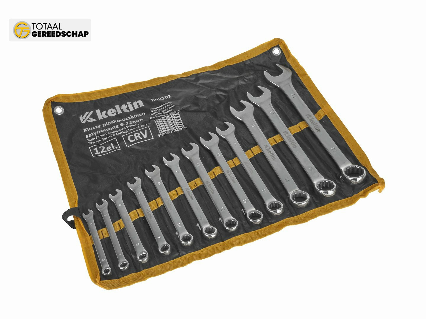 Satin Finish Combination Wrench Spanner Set with AntiSlip Layer 6-22mm 12pcs