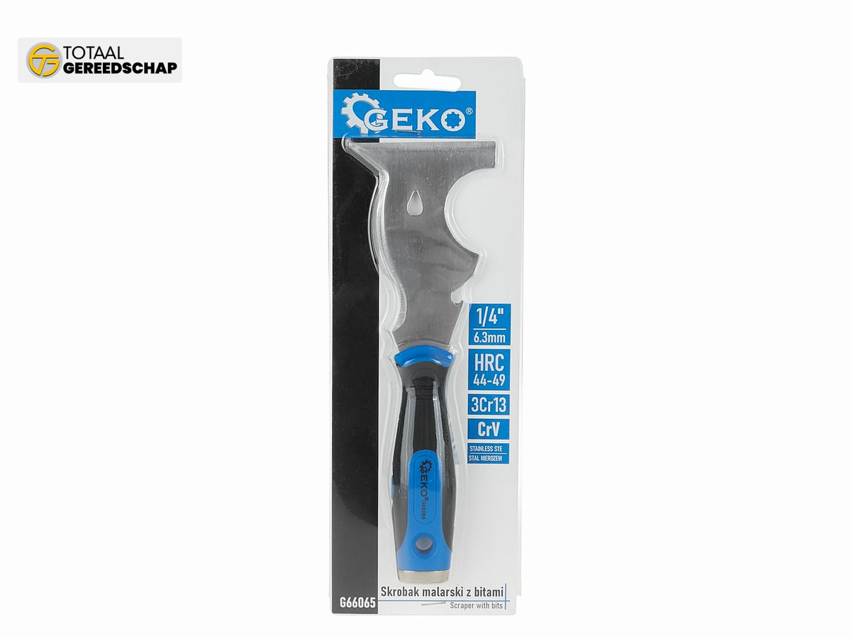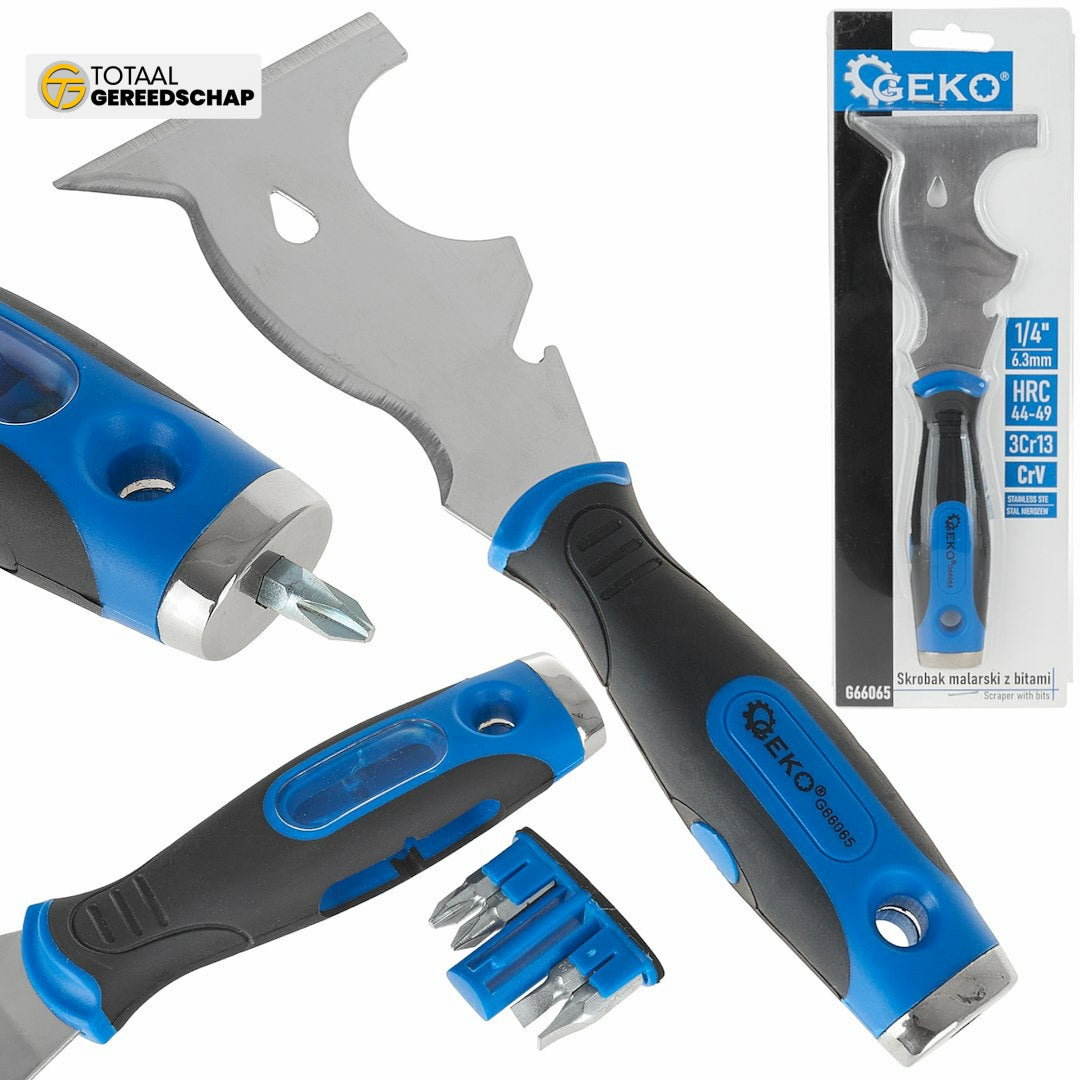 The contoured paint scraper with bits by Geko is a versatile tool for a wide range of renovation and finishing tasks. It is perfect for removing paint, wallpaper, grout, and cleaning surfaces and painting tools. Thanks to the added screwdriver function, this tool is ideal for both professionals and DIY enthusiasts who appreciate convenience and multifunctionality in their tools.