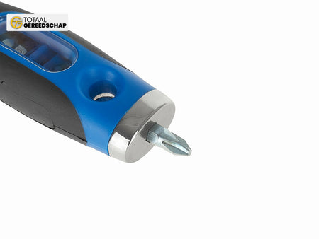 - Built-in bit storage: A practical compartment in the handle for a set of four 1/4" bits, making the tool versatile and practical.