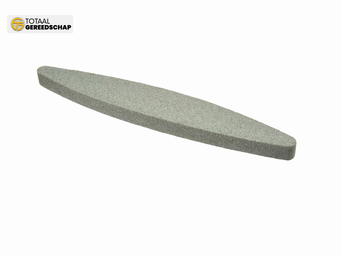 An oval sharpening stone is used for sharpening everyday tools such as knives, scythes, axes, scissors, pocket knives, etc.