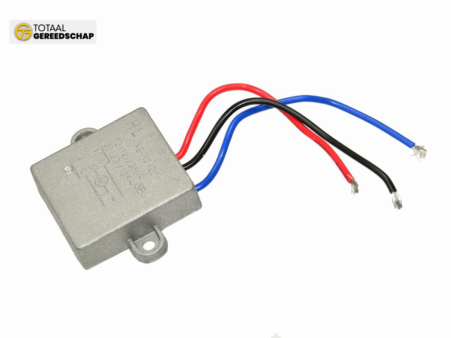 A circuit protecting power tools and installations against excessive current surges when the motor is switched on. At the start, the device limits the current pulse and prevents overloading.