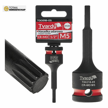 A professional SPLINE impact socket by Tvardy, designed for heavy-duty use with impact wrenches. Indispensable in automotive workshops, industrial settings, and during assembly of structures using SPLINE socket connections.