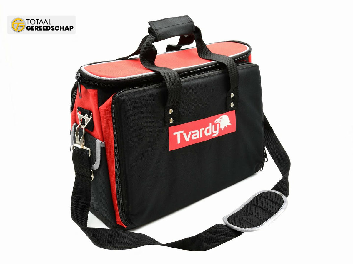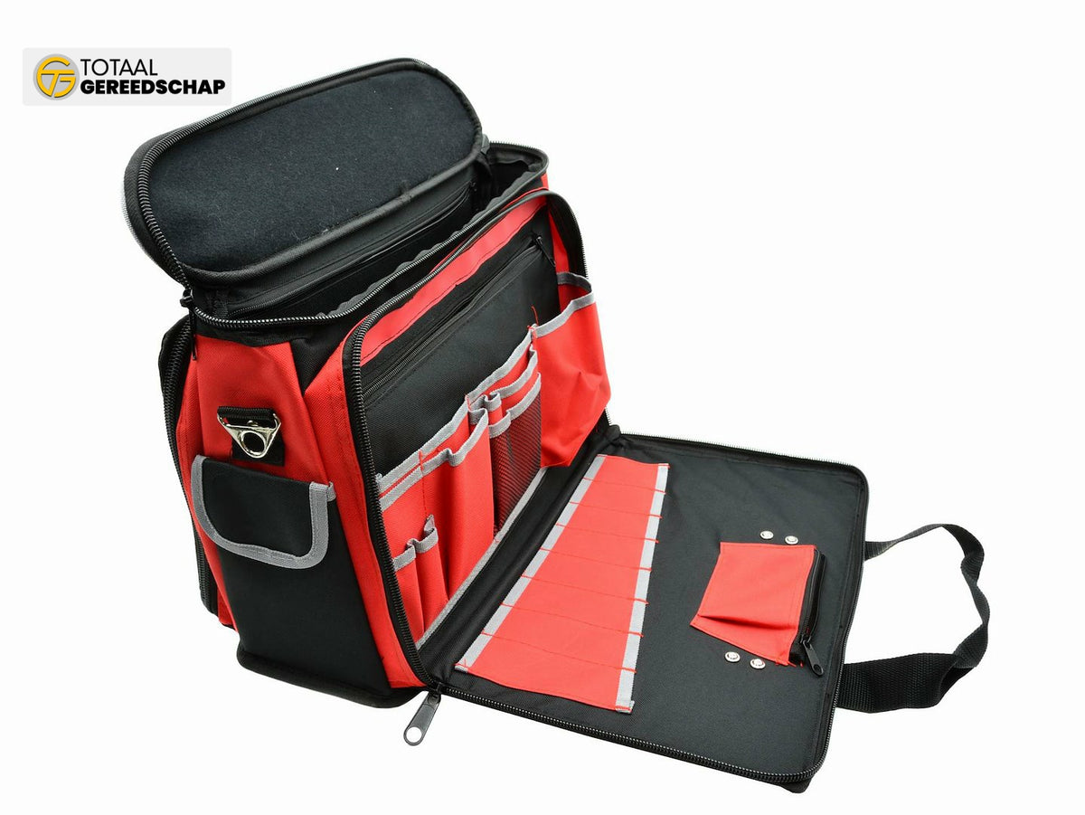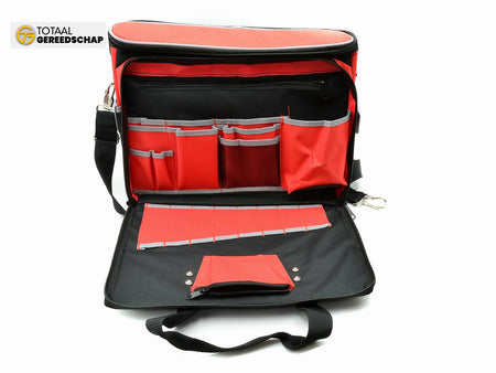 - Two side chambers equipped with screwdriver and combination wrenches holders; small and large pockets for tools and accessories