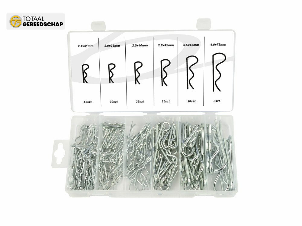 Assortment includes a variety of 6 different sizes of retaining clips.