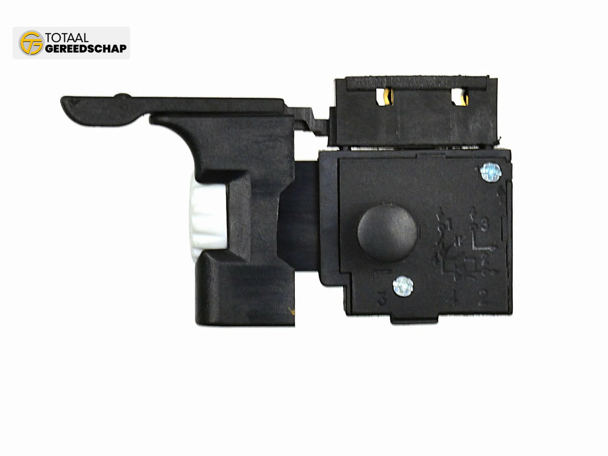 Push-button switch with speed control, reverse rotation right/left, and switch lock in the permanent ON position.