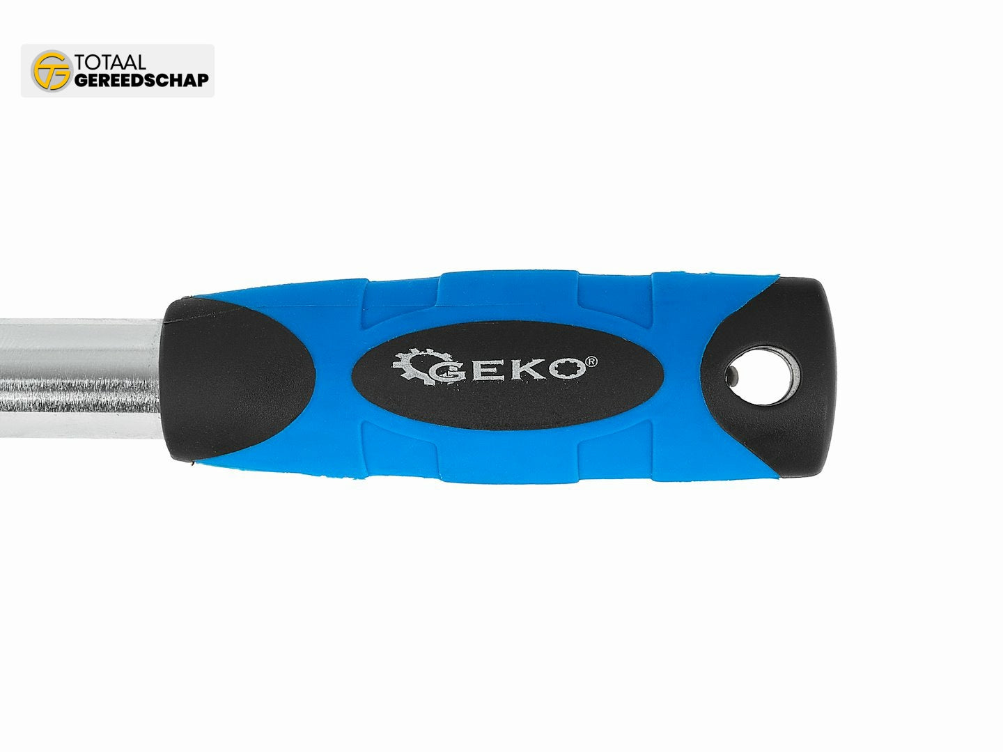 Ergonomic handle coated with non-slip TPR material in blue-black – secure grip and user comfort.