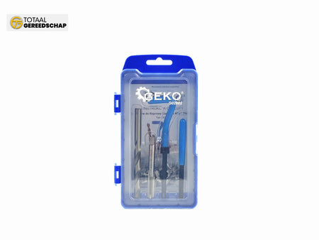 Damaged thread repair set M8x1.25mm. The set includes a tap and drill made of high-quality HSS4341 high-speed steel, a guide knob, a punch and a set of spiral inserts.