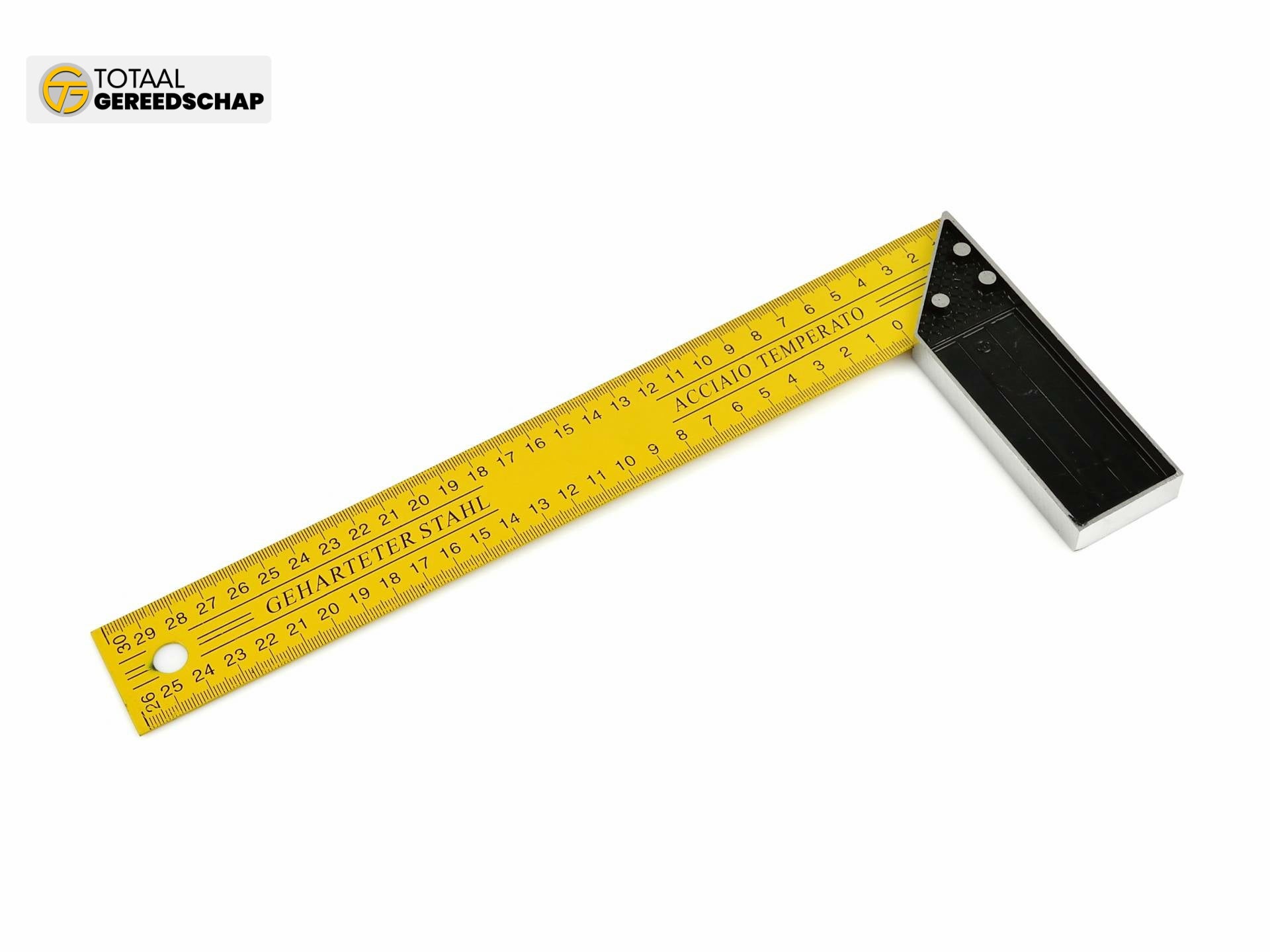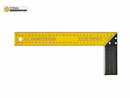Try square with a working length of 300mm. Made of high-quality aluminum and steel. A steel strip with a two-sided metric scale. The try square is especially useful in the carpentry and construction industry when determining and checking right angles.