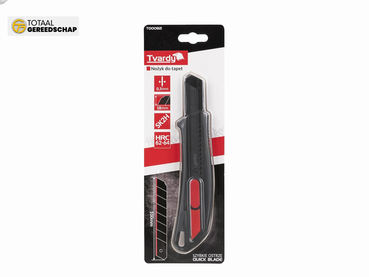 The Quick Blade retractable utility knife by Tvardy has been designed with comfort and safety in mind. Equipped with an 8-segment snap-off blade made of SK2H steel, it ensures reliability and durability in any conditions. Additionally, the body made of durable ABS plastic provides high resistance to mechanical damage and comfort during use.