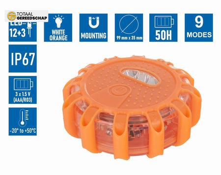 The light is equipped with 12 orange LED diodes and an additional 3 white LED diodes. LED diodes emit bright, energy-efficient light that is long-lasting and durable.