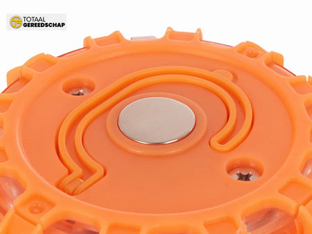 The light can be easily attached to metal surfaces due to the built-in magnet in its base. This allows for mounting on vehicles, machinery, or other metal objects for signaling or illuminating an area.