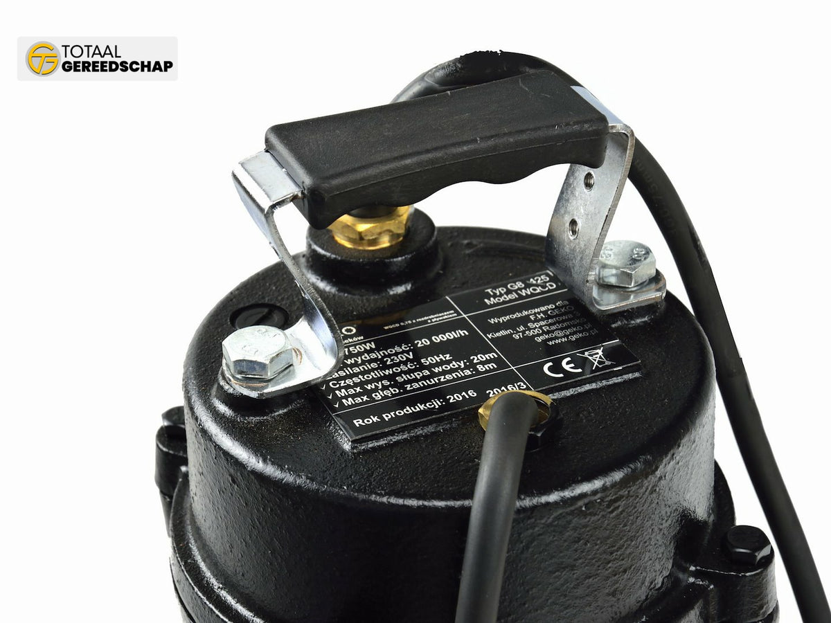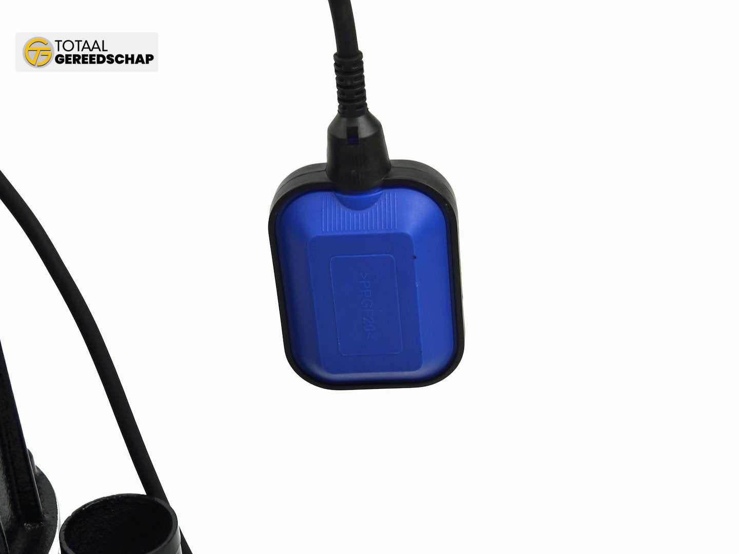 The pump is equipped with a copper wire and a float switch that turns the pump off when the water level is maximum.