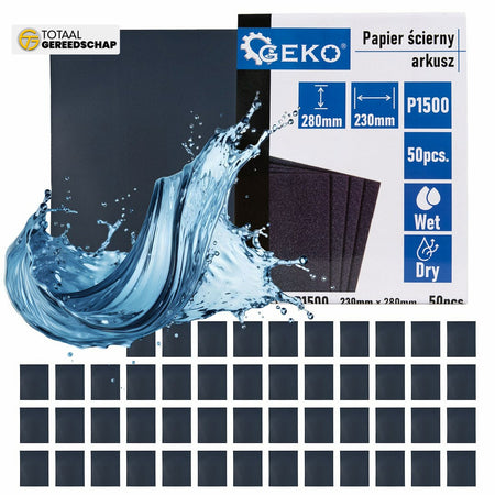 Waterproof sandpaper sheet with dimensions 230x280mm and grit P1500 designed to deliver excellent results in processing various surfaces both dry and wet.