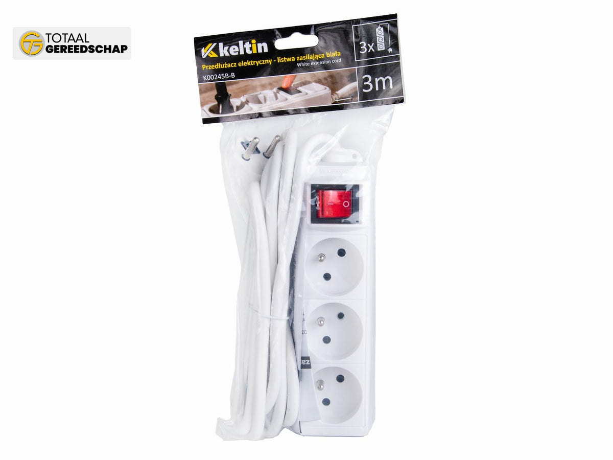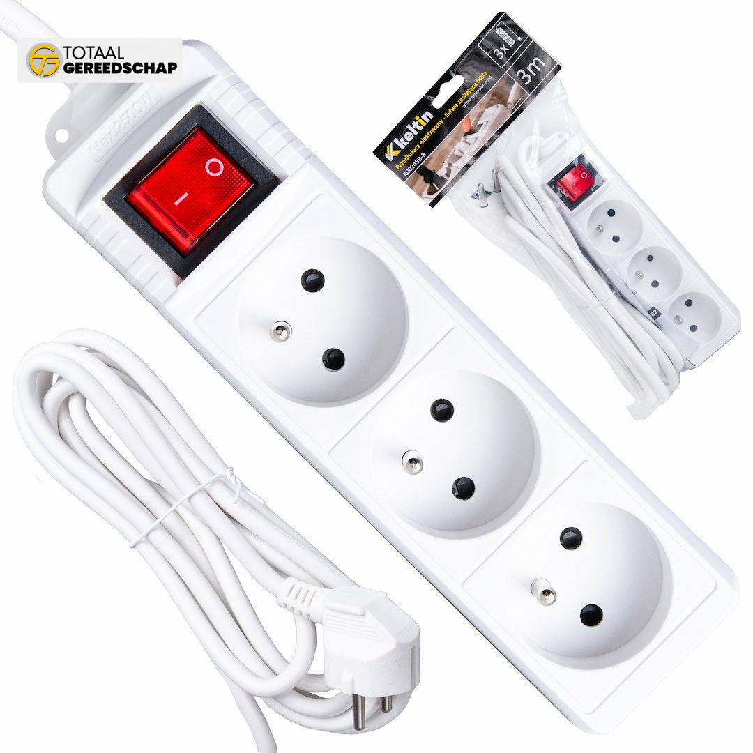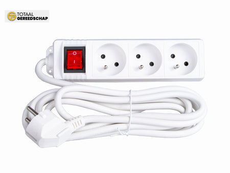 A functional 3-socket power extension cord with grounding and a switch, perfect for everyday use both at home and in the office.