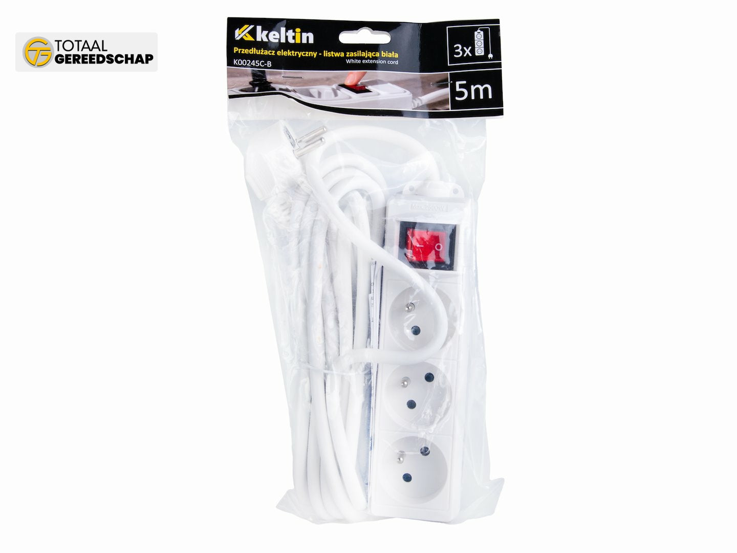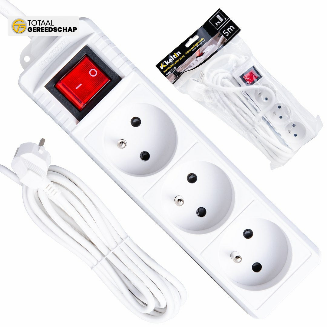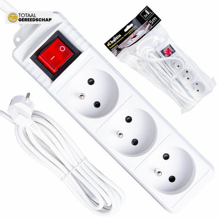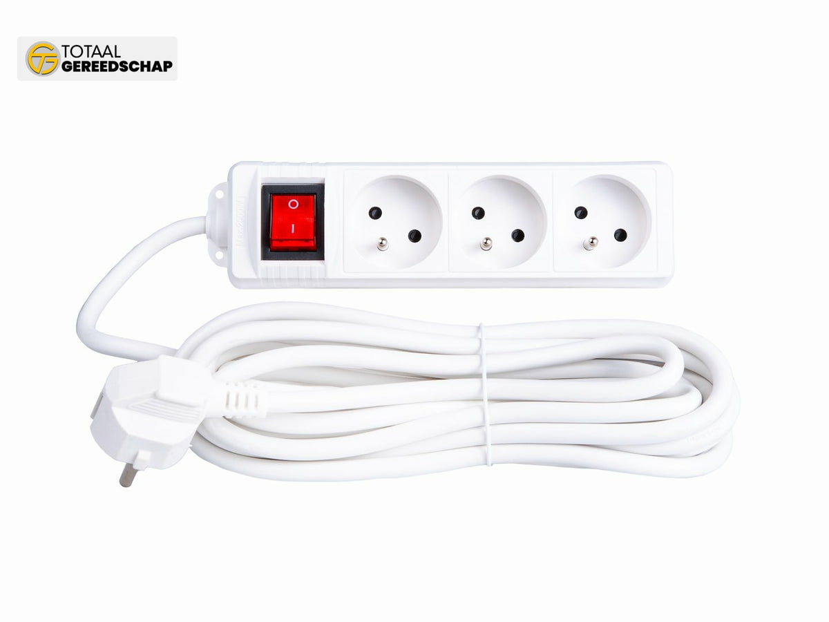 White extension cord with switch 3 sockets 5m