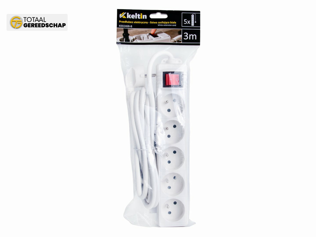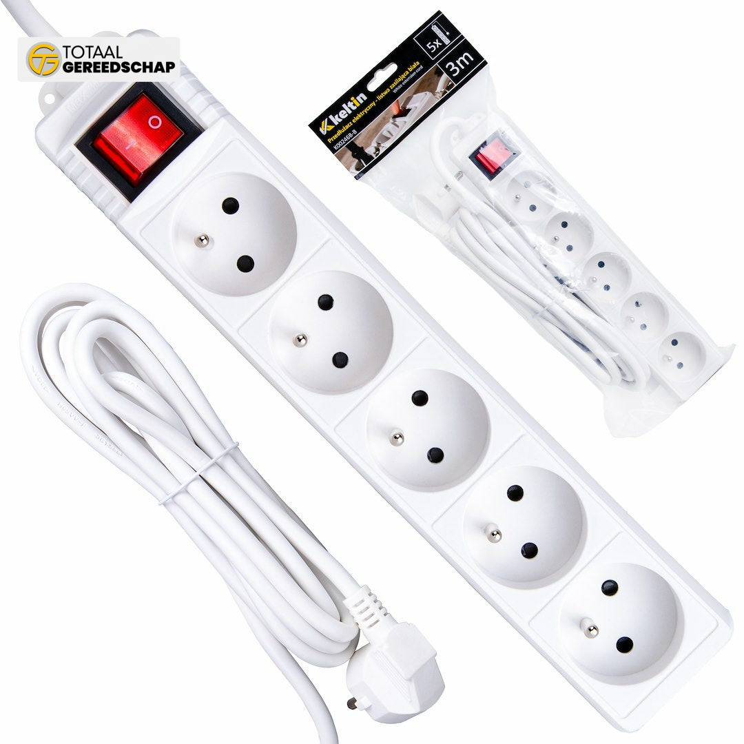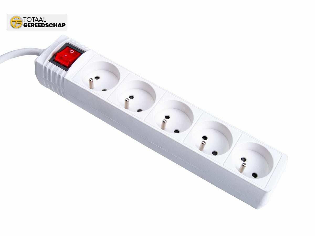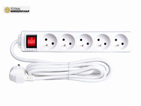 A functional 5-socket power extension cord with grounding and a switch, perfect for everyday use both at home and in the office.