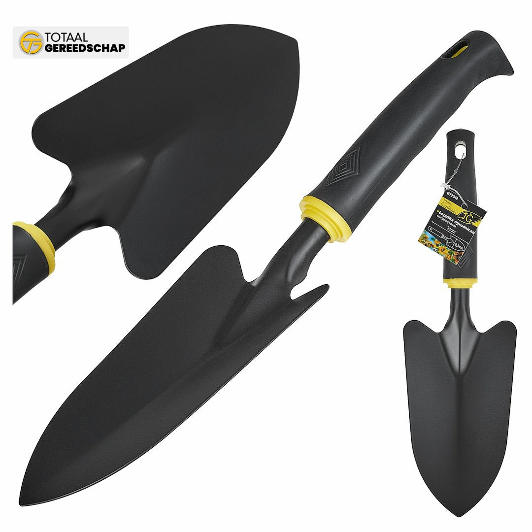 The wide gardening trowel is designed with comfort and durability in mind.