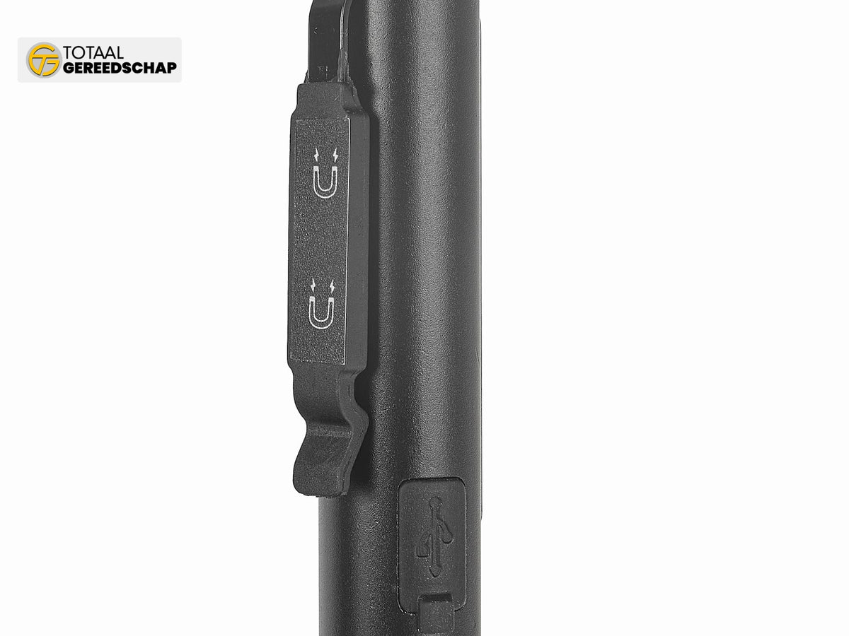 The tool is equipped with a strong, practical magnet allowing easy attachment to metal surfaces, facilitating work in places requiring better illumination such as under the hood of a car. The 120° rotation function helps to adjust the light according to current needs.