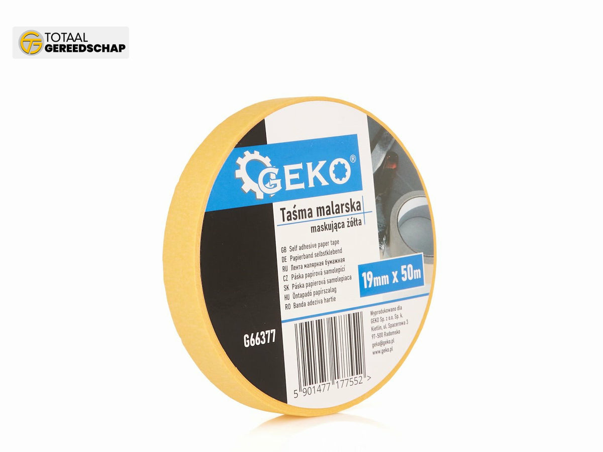 Our yellow masking tape has a width of 19 mm and a length of as much as 50 meters. This means you have plenty of material to cover large surfaces and execute even the most complex projects. Whether you’re painting walls, furniture, or creating artistic patterns, our tape perfectly separates areas, ensuring clean and precise painting lines.